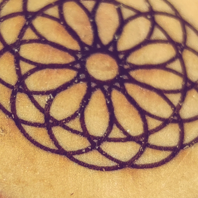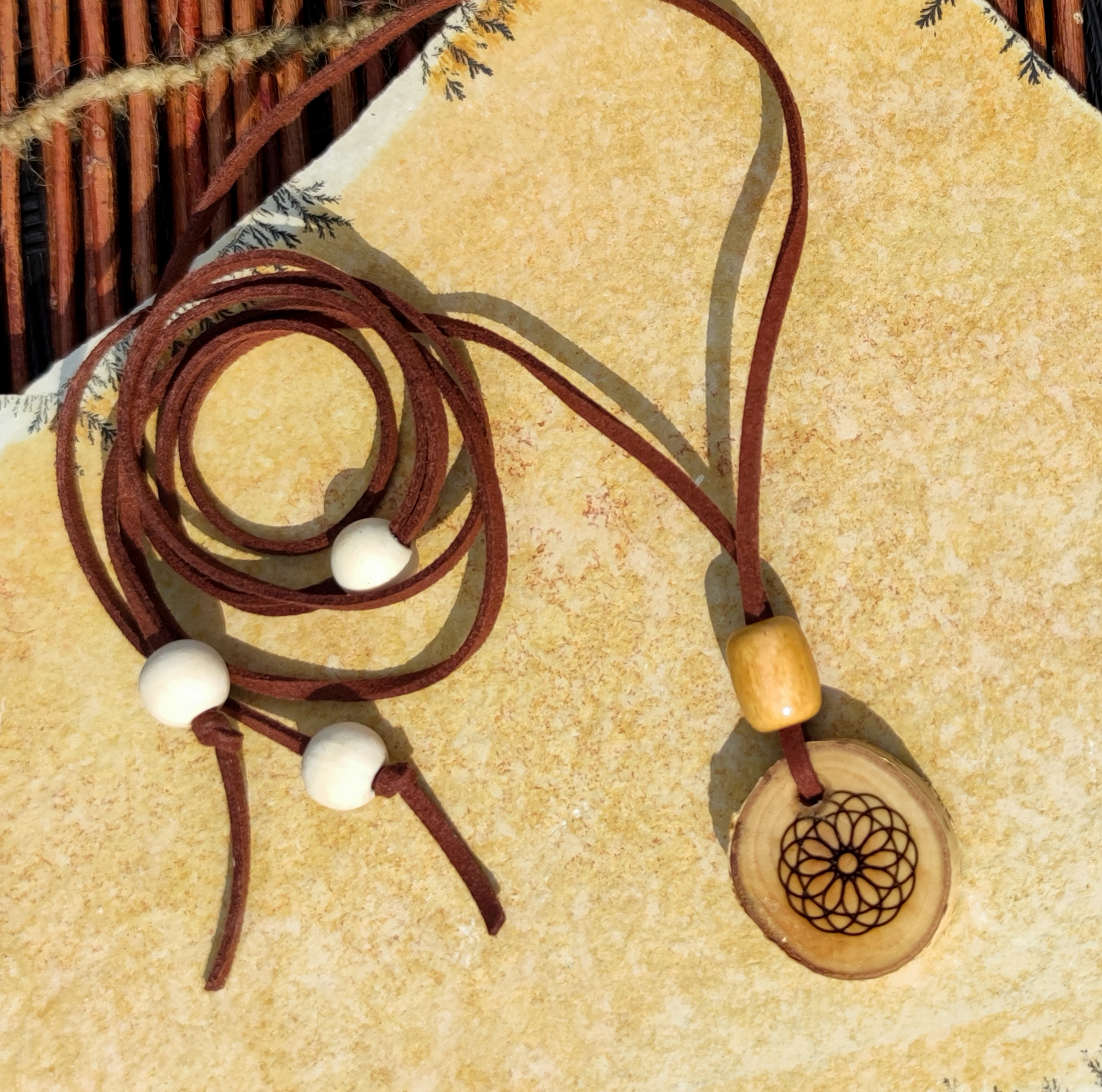 Anhänger aus einer Astscheibe Birkenholz mit Blumen- Mandala Gravur,