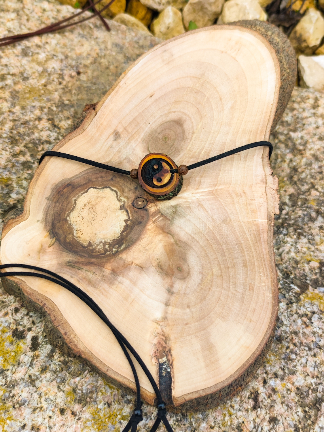 aus edlem Pflaumenholz handgefertigt & mit einer Ying & Yang Gravur versehen, verbindet dieser Anhänger natürliche Wärme mit tiefer Symbolkraft.