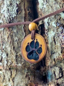 Gefertigt aus Pflaumenholz, trägt er eine liebevoll eingebrannte Hundepfote als Symbol für Verbundenheit, Vertrauen und bedingungslose Liebe.