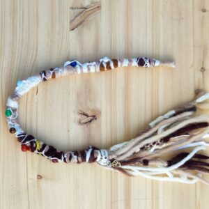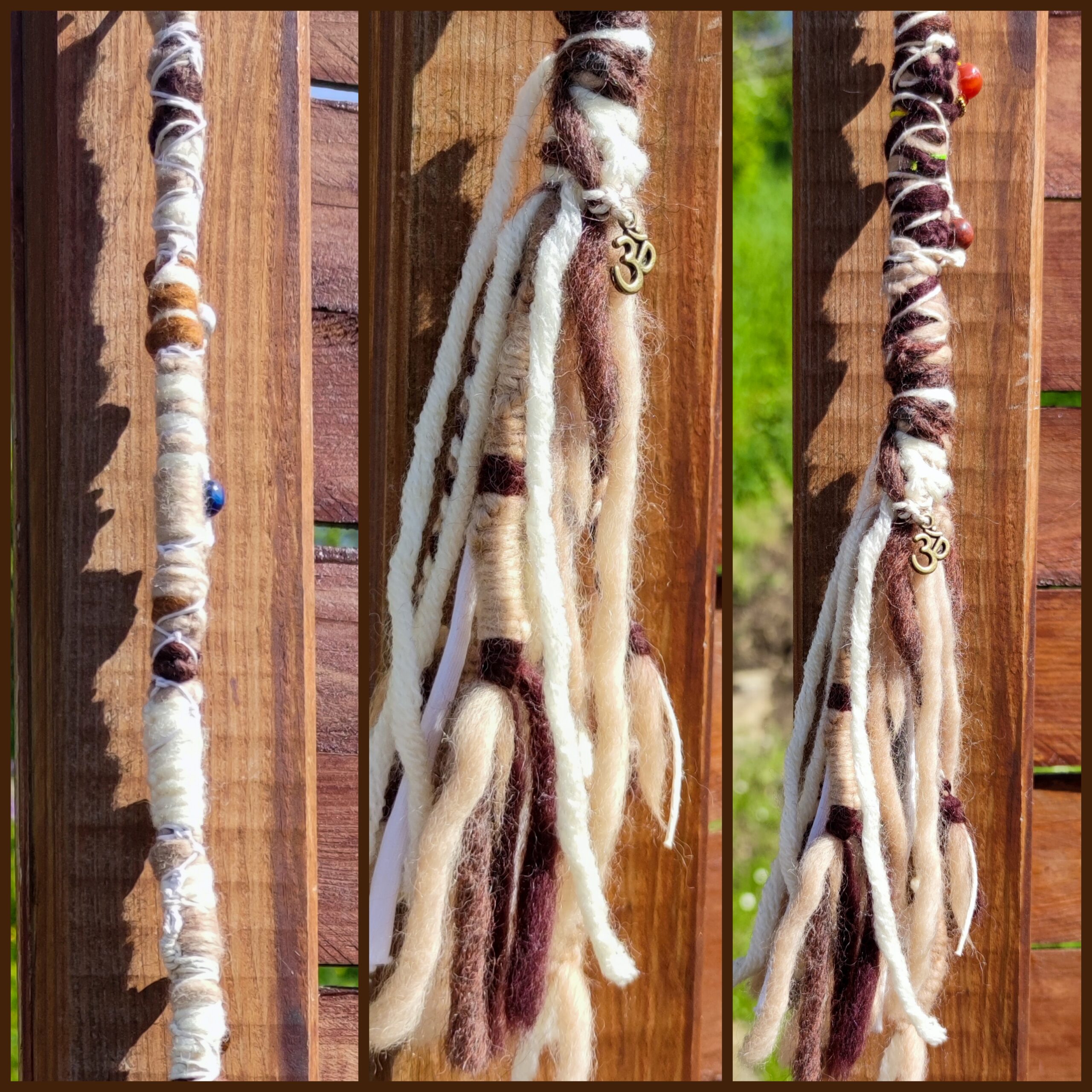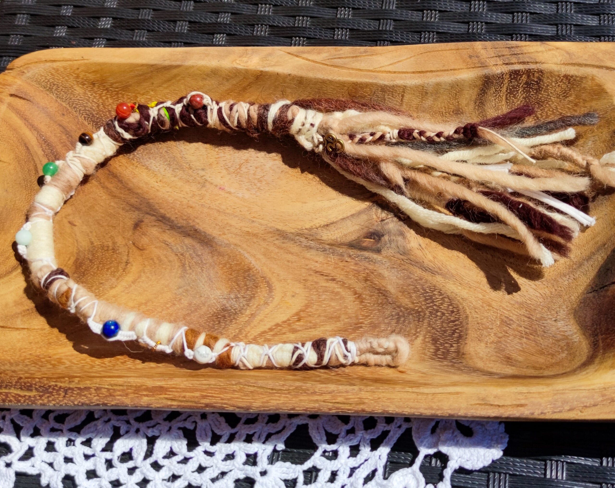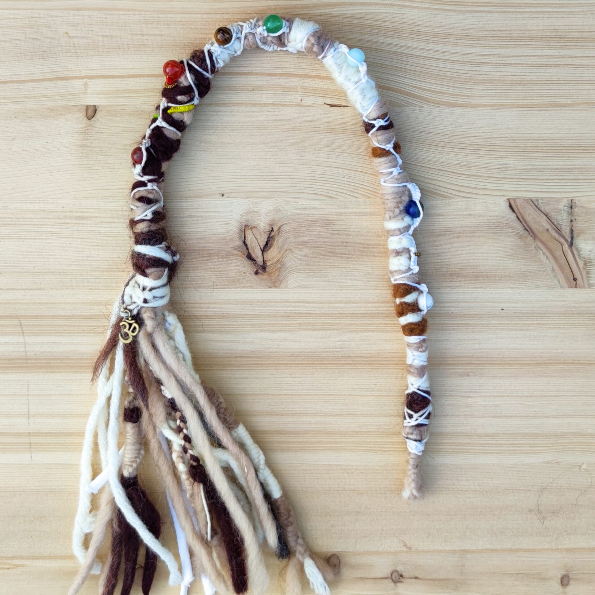 Dreadwrap – Unikat in Sand-Tönen mit Chakra – Steinen & Om Anhänger aus Messing