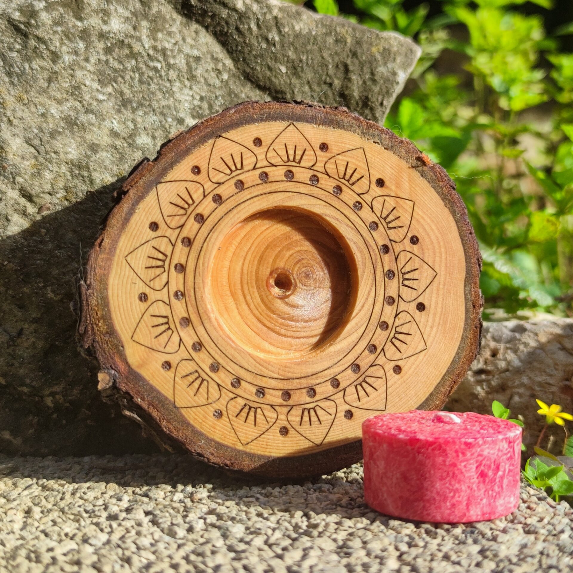 inklusive Kerze – deine Wahl (Duftkerze oder handgegossenes Teelicht)